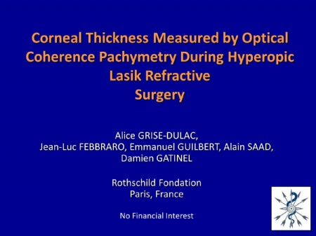 Corneal Thickness Measured by Optical Coherence Pachymetry During Hyperopic LASIK Refractive Surgery